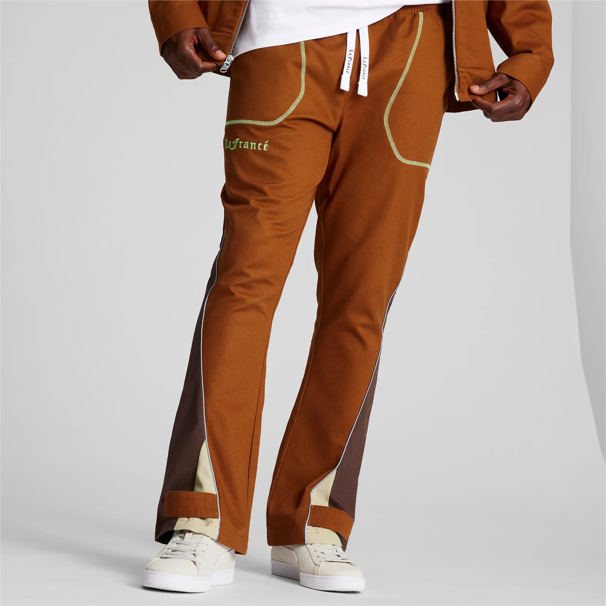 Inspired by LaMelo Ball’s effortless, one-of-one style, the LaFrancé Woven Bottom is the perfect pair of pants to complete your PUMA x LAFRANCÉ look. A cotton-twill weave accented with green piping and a script “LF” means these pants are as comfortable as they are fashionable. The LaFrancé Woven Bottom works great with any wardrobe, or pair it with the LaFrancé Jacket for a Melo-inspired “1 of 1” outfit.